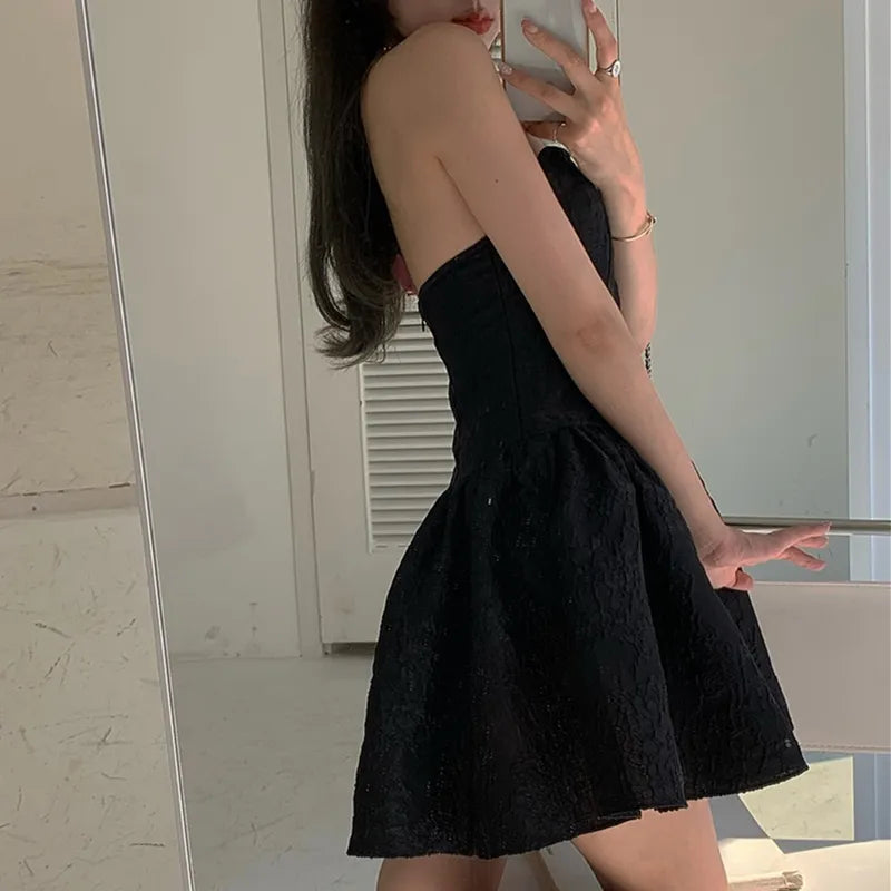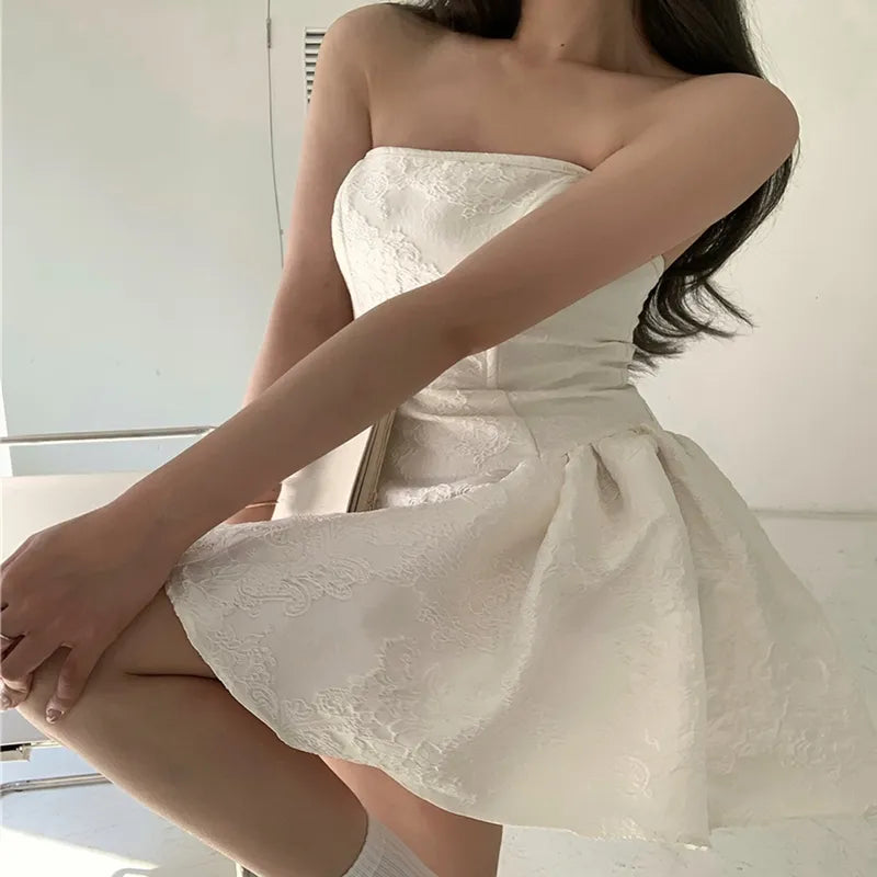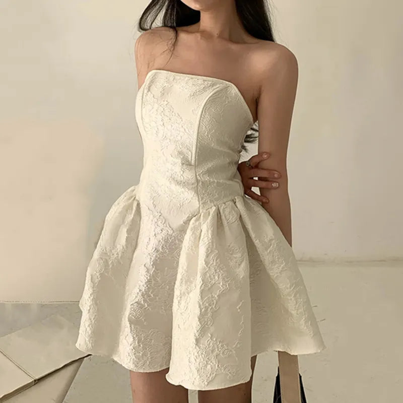 - Features: Strapless, sleeveless, with a stylish slash neck